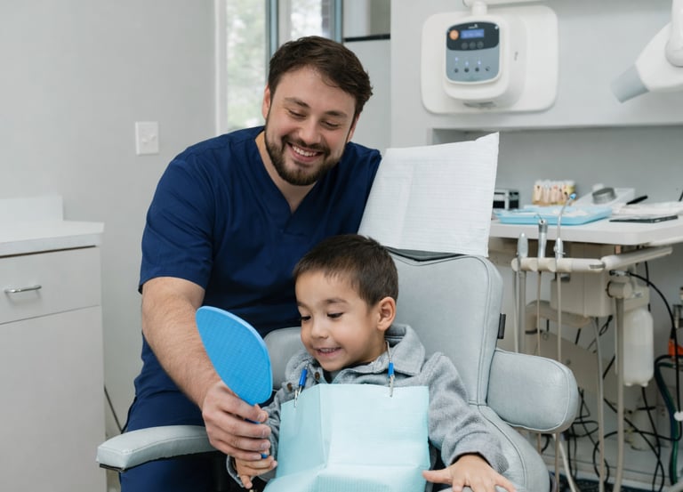 Soins adaptés à l'enfant avec des techniques douces pour traiter les caries et prévenir leur progression.